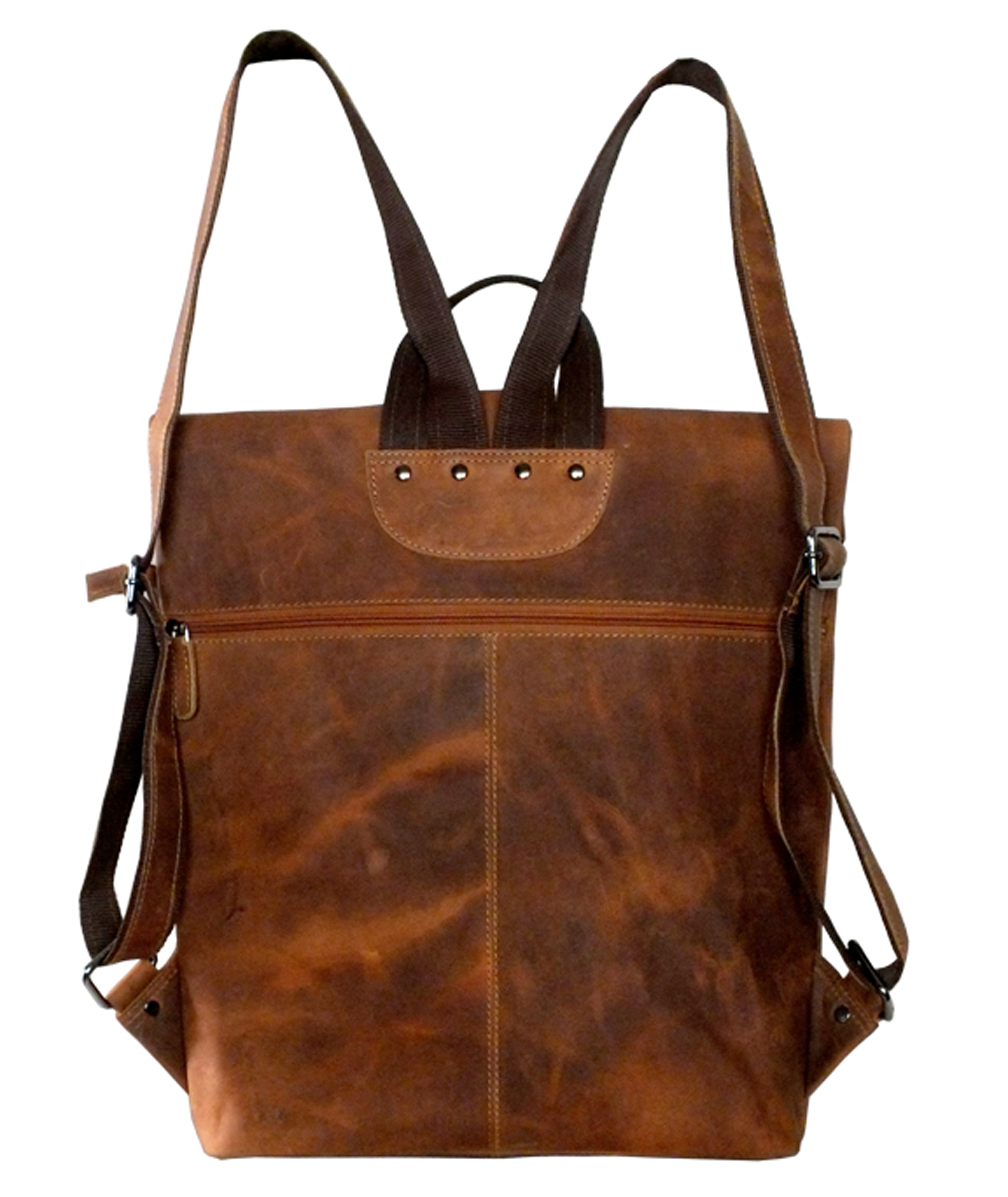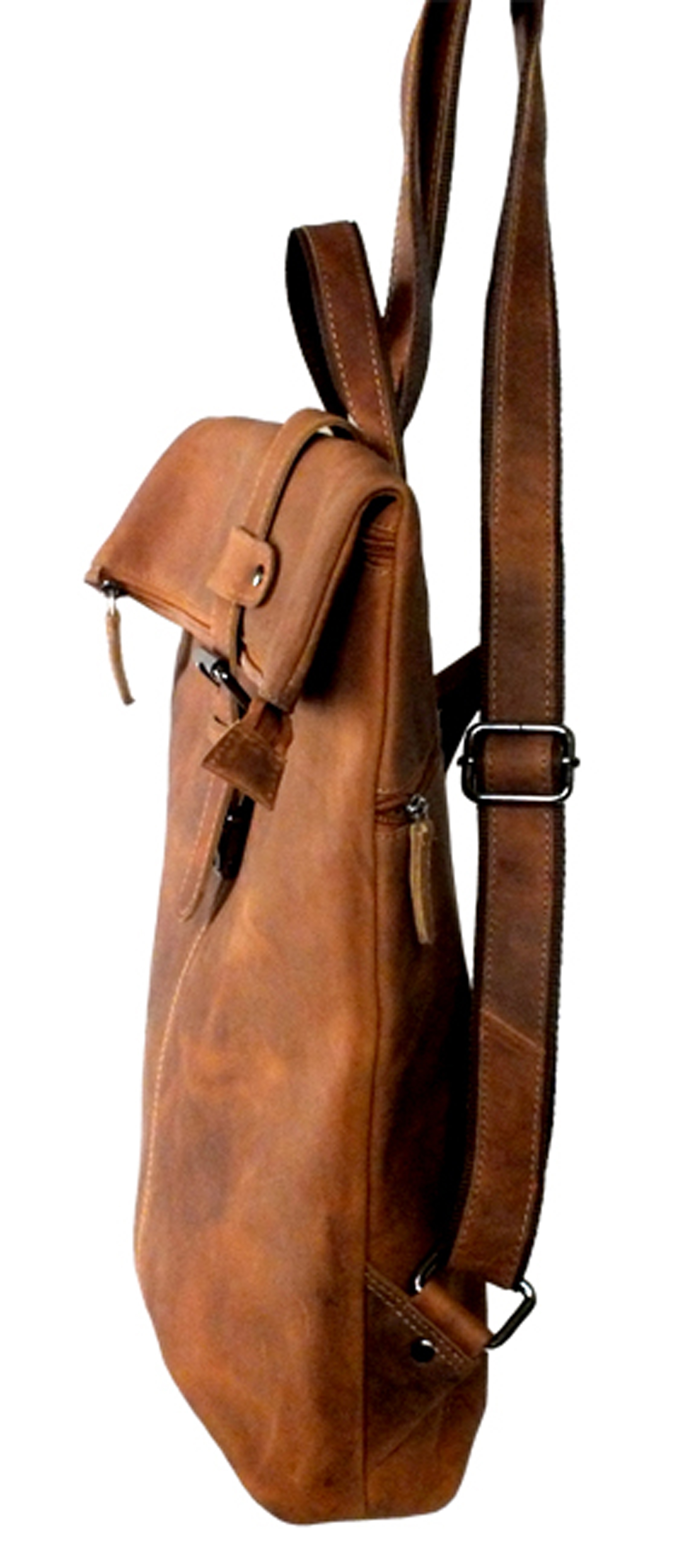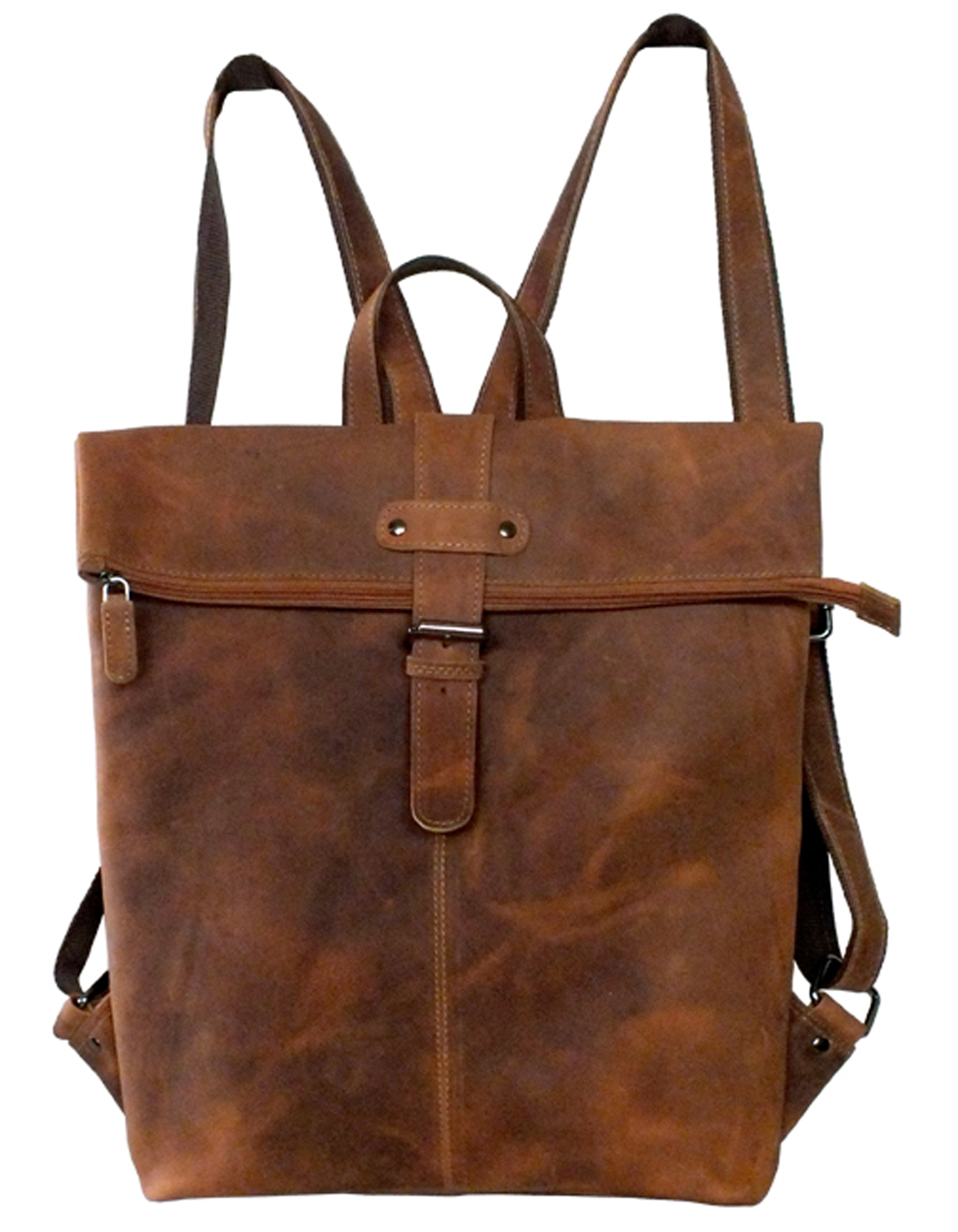 Dieser Rucksack ist ein besonderes Stück. Äußerst stylish vereint er eine Messenger Tasche mit einem Rucksack. Er hat verstellbare Riemen. Die Reißverschluss Oberseite wird umgeklappt und mit einer Schulranzen Schnalle zusätzlich verschlossen. Unter der Klappe und hinten befinden sich je ein Reißverschluss Fach. Innen gibt es ein getrenntes Hauptfach, zwei Reißverschluss Fächer, zwei kleine Fächer für Handy, etc und ein paar Stiftehalter.