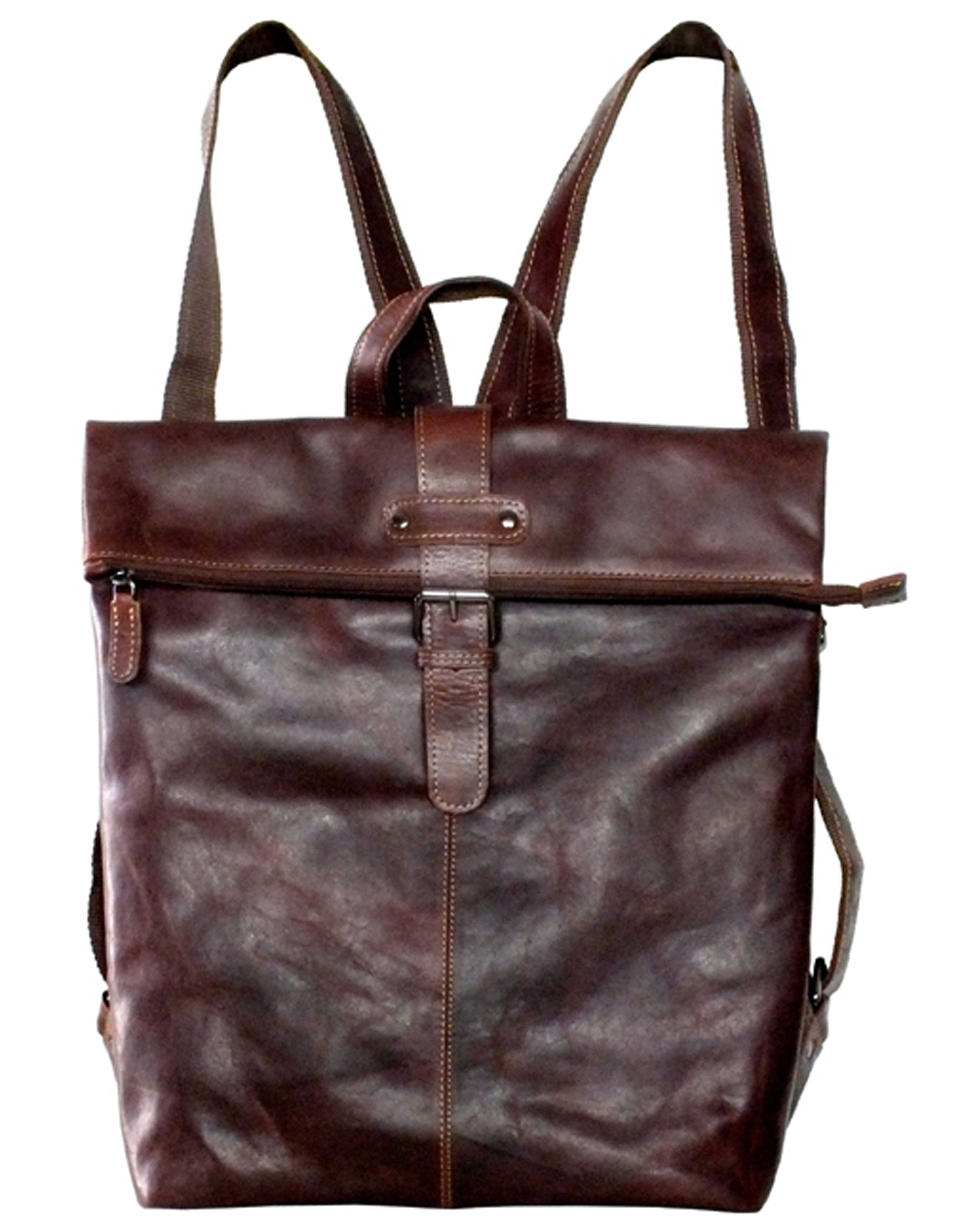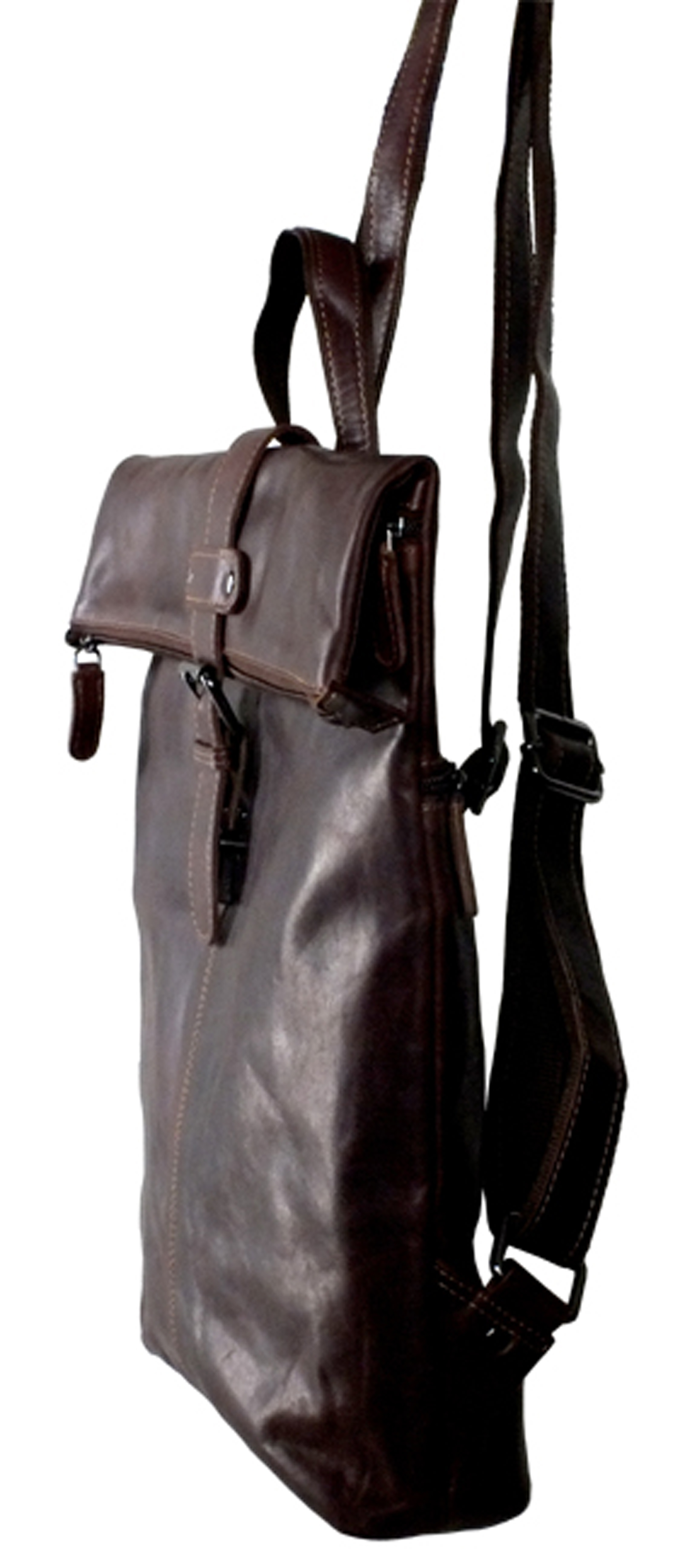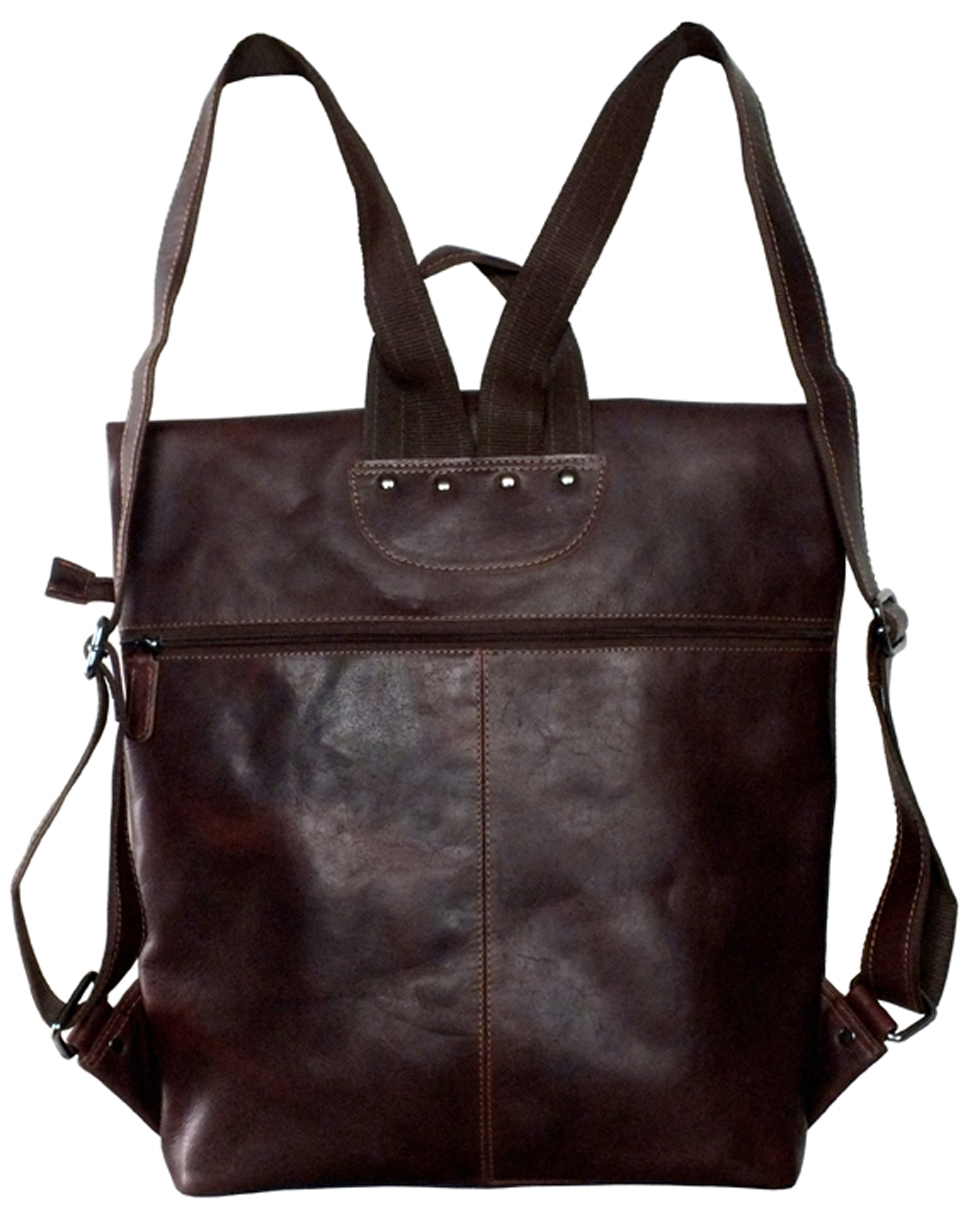 Dieser Rucksack ist ein besonderes Stück. Äußerst stylish vereint er eine Messenger Tasche mit einem Rucksack. Er hat verstellbare Riemen. Die Reißverschluss Oberseite wird umgeklappt und mit einer Schulranzen Schnalle zusätzlich verschlossen. Unter der Klappe und hinten befinden sich je ein Reißverschluss Fach. Innen gibt es ein getrenntes Hauptfach, zwei Reißverschluss Fächer, zwei kleine Fächer für Handy, etc und ein paar Stiftehalter.